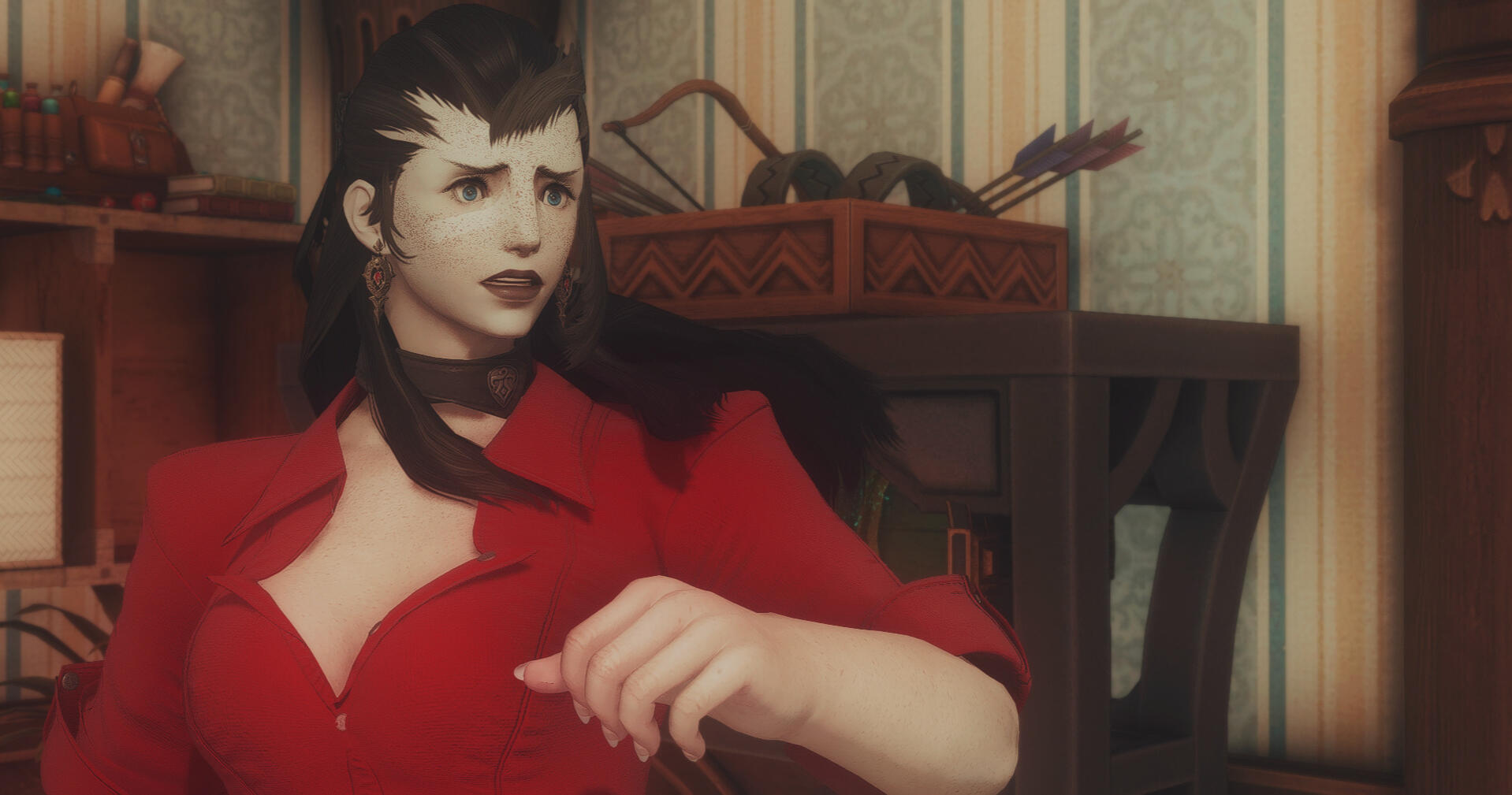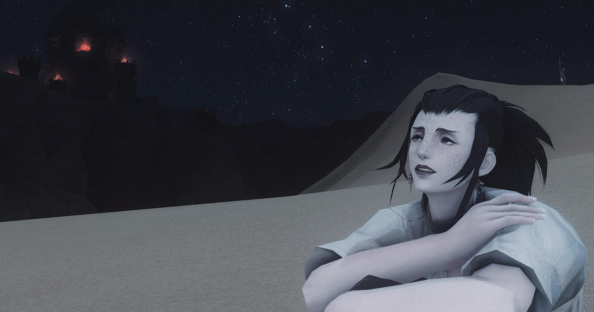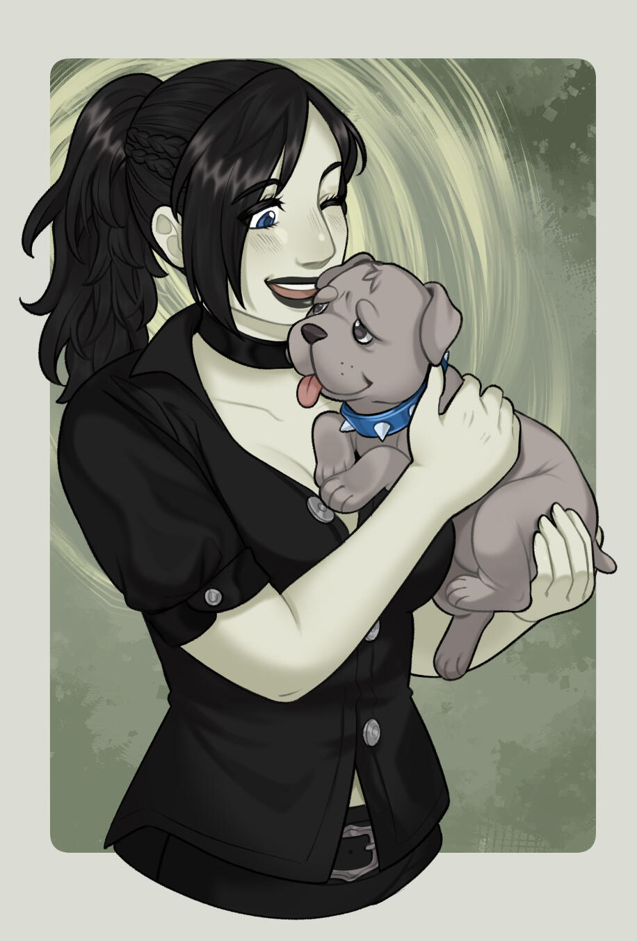 (Pronounced with the "oe" sound as a long “o" similar to “rowboat”.)Nickname MoeAge 32Height 7’ 6Hair Thick, layered and dark as pitch. Moe’s hair is entirely black, and has the signs of being self-maintained through means of scissors or otherwise. She largely keeps it pulled back in braids or a ponytail; this shows off the shaved sides, which are otherwise hidden when her hair is down.Skin & Build Moe is broad shouldered and heavily muscled, with less of an hourglass shape than an inverted triangle. She wouldn’t be described as anything more than pale - unsettlingly so. Moe has the look of polished marble, except for her face and shoulders that are covered in freckles. Decades of paying for aetheric healing has left her unnaturally without scar or blemish, and many signs of aging or weathering are visibly missing.
