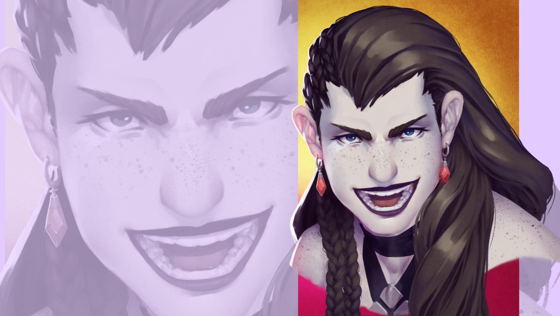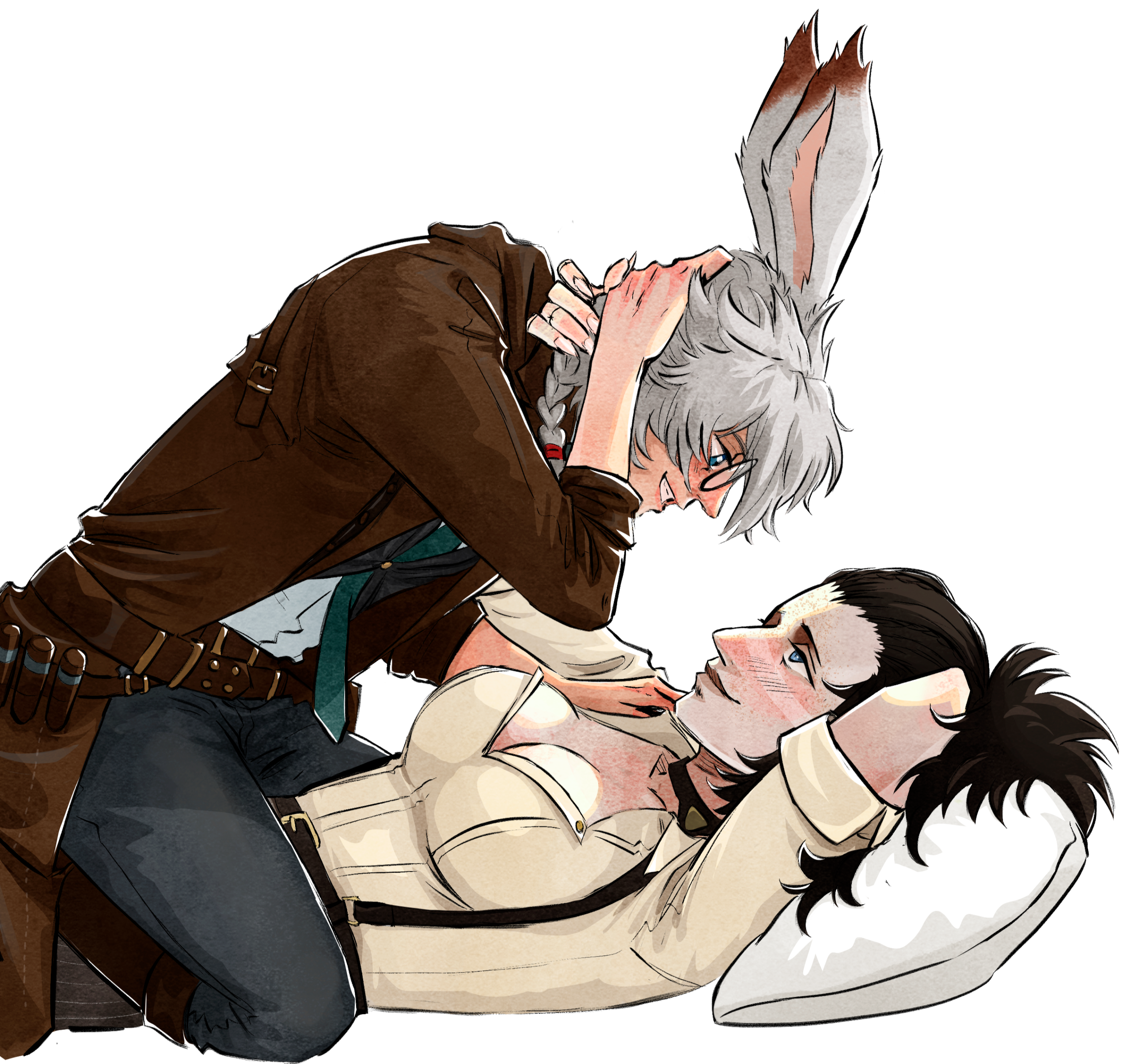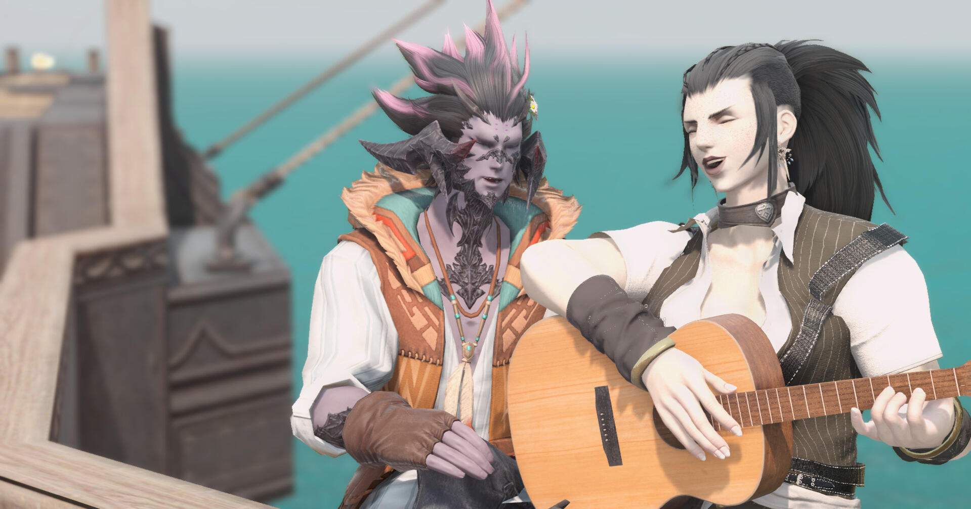 he/him. .Moe and Auro’usk are an unlikely pair. While both are tall and fairly broad, Auro’usk is a timid and quiet man. Moe can’t not announce her presence wherever she goes. The two have been friends for more than half a decade, and balance one another well.